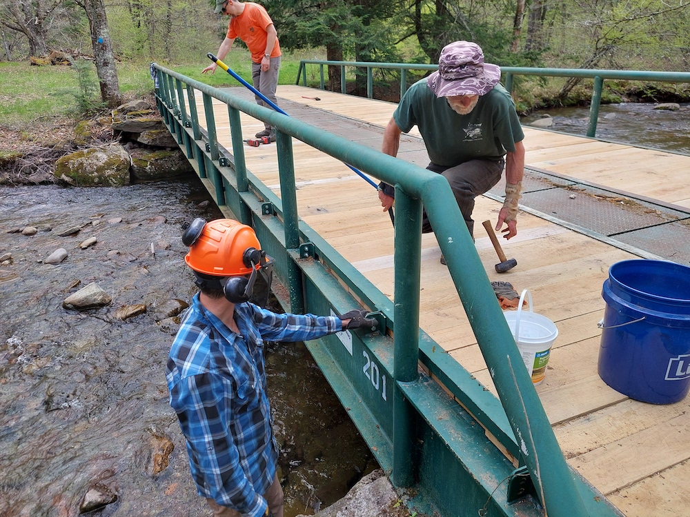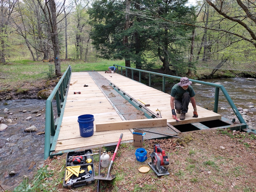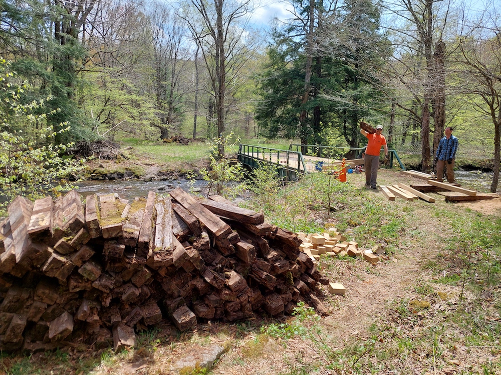 Maintaining forest roads and trails is important to provide reliable access to the woods for management, recreation, research and education. Frost Valley YMCA’s 50-foot bridge over the West Branch of the Neversink River is the gateway to their 300+ acre Model Forest. The bridge’s white oak decking had over 20 years of service, but by the spring of 2023 it was due for replacement.