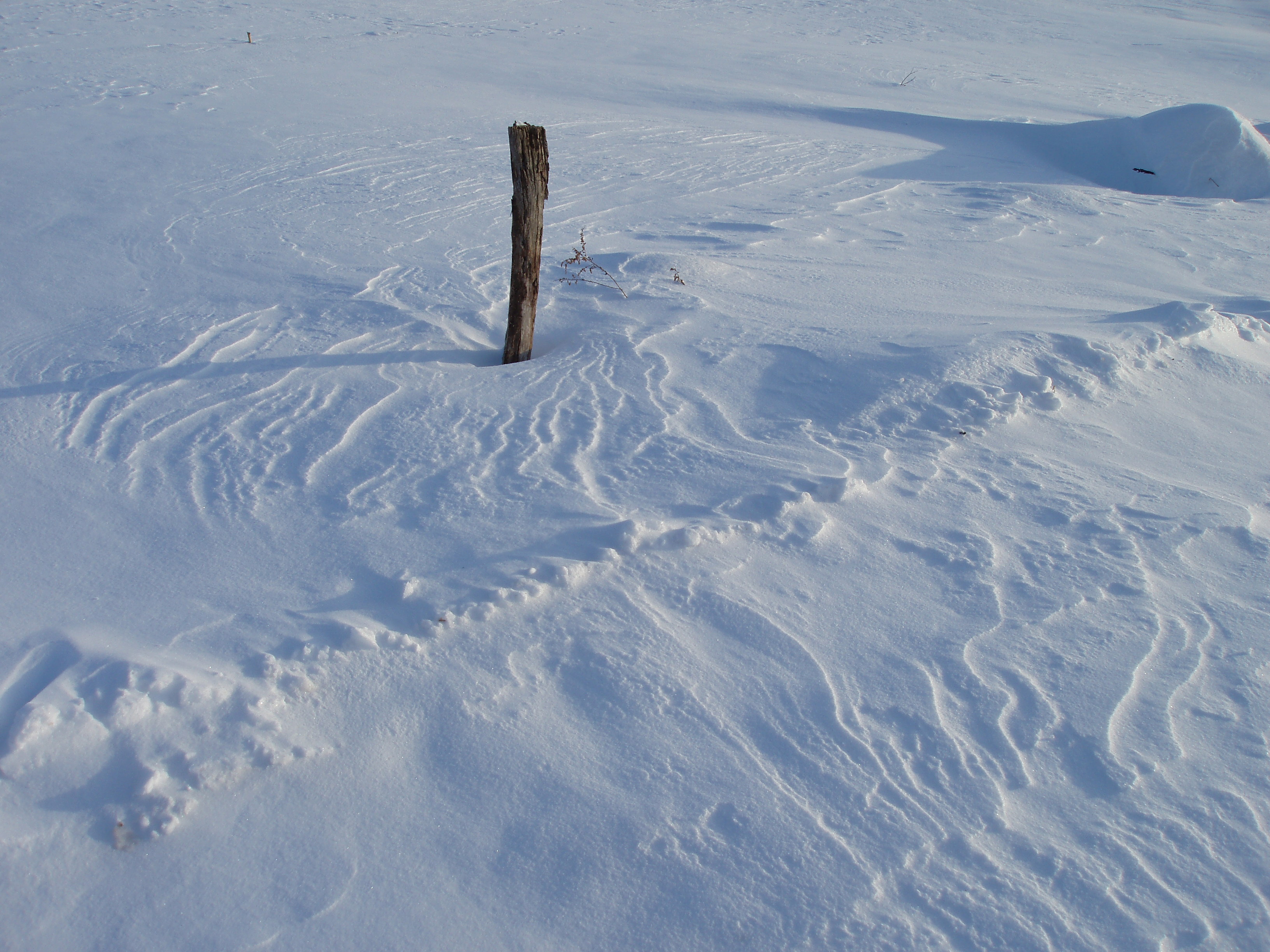 Once in a while the snow density and wind are just right to create interesting patterns in the snow.
